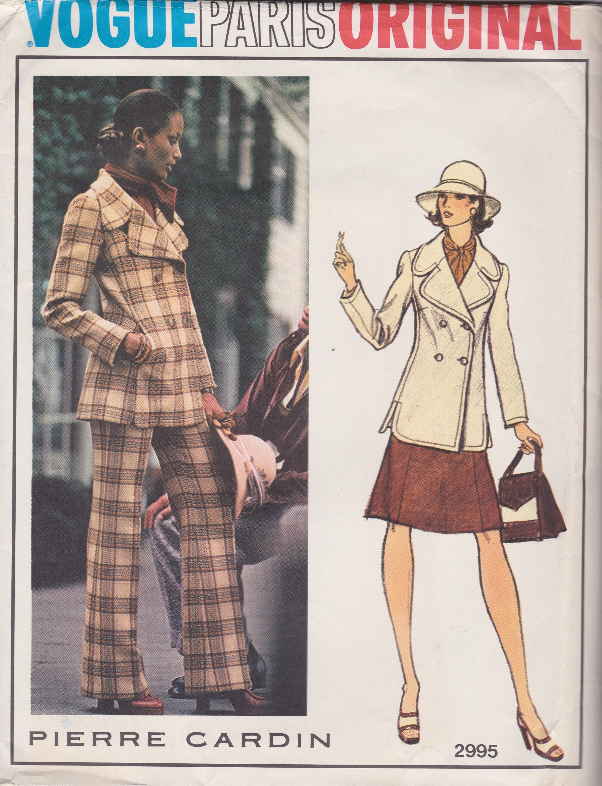 1960s Elegant Pierre Cardin Suit Pattern Vogue Paris Original 1434 Side Button Feature Stand Up Collar Eye Catching Design Bust 32 Vintage Sewing Pattern Faactory Folded